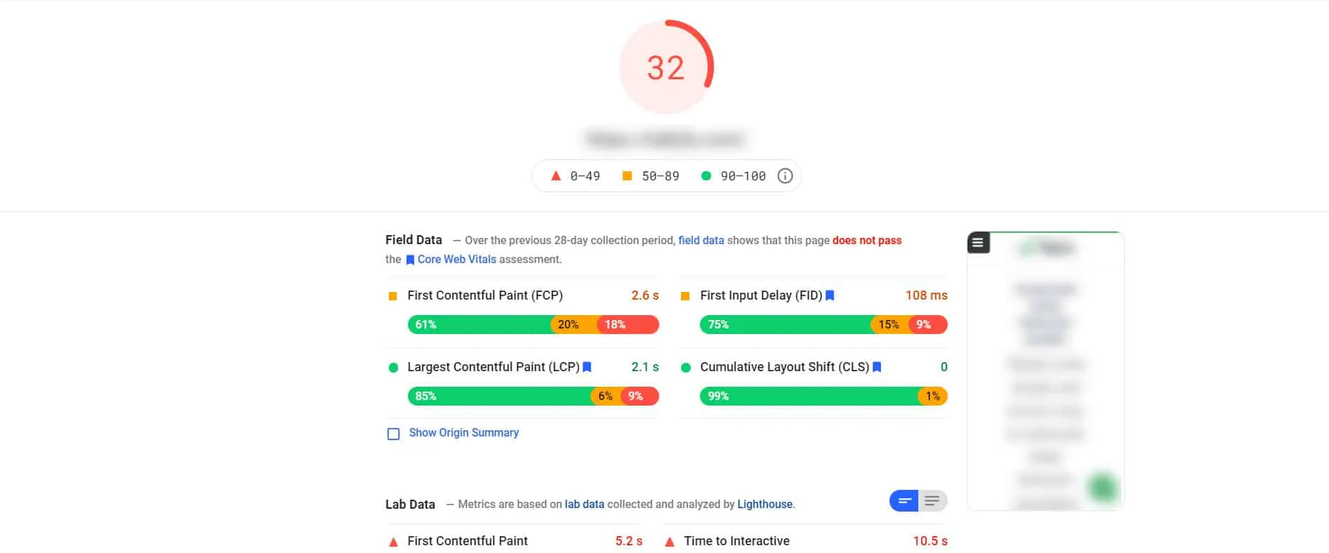 To check your site’s Core Web Vitals scores, go to Google PageSpeed Insights and enter your domain in the text area. On the results page, you will see your CWV scores, along with suggestions on how to fix the issues.