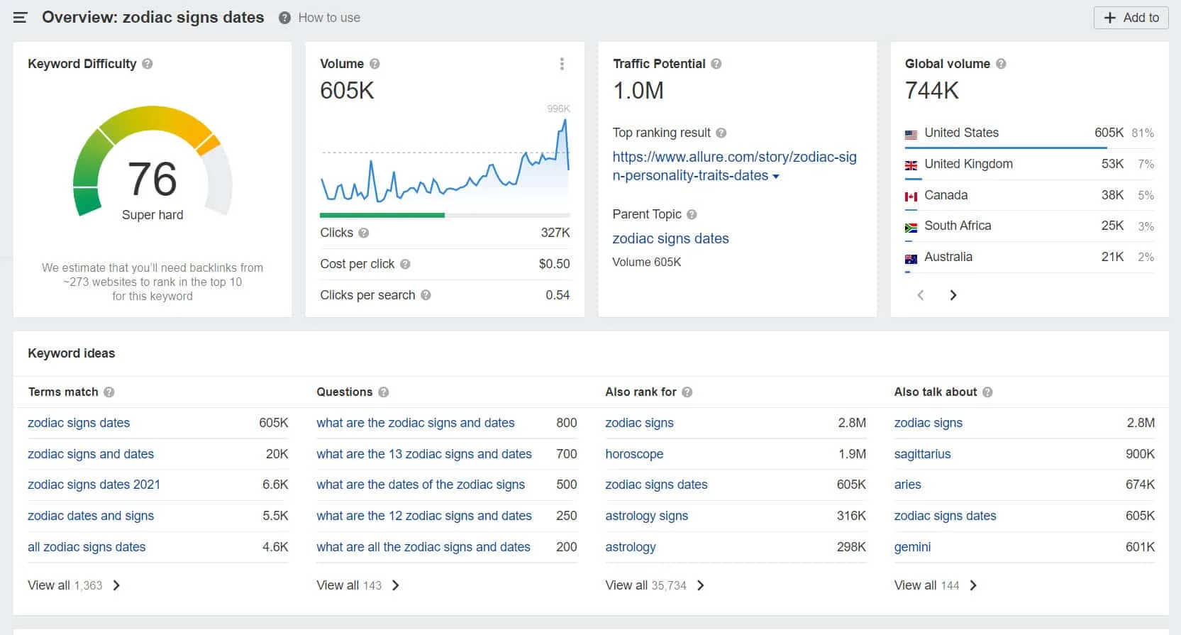 This shows data about the topic to which the initial keyword belonged. We will delve deeper into the information here once we reach the keyword research section of this article.