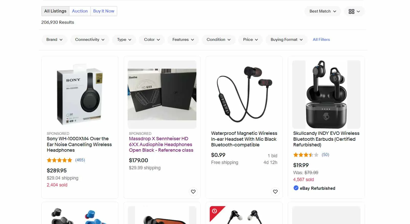 On eBay, scroll down until you reach the products section. You can filter the results based on price, brand, and others to get a general sense of the average product cost in this niche.