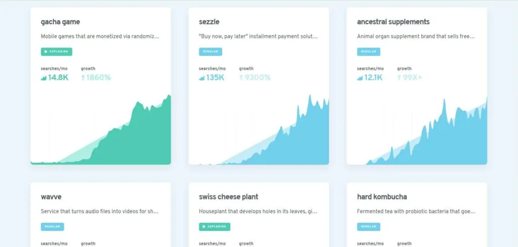 It’s a premium tool with a 14-day trial for $1. However, the site shows data for some of the niches that exploded in search volume.