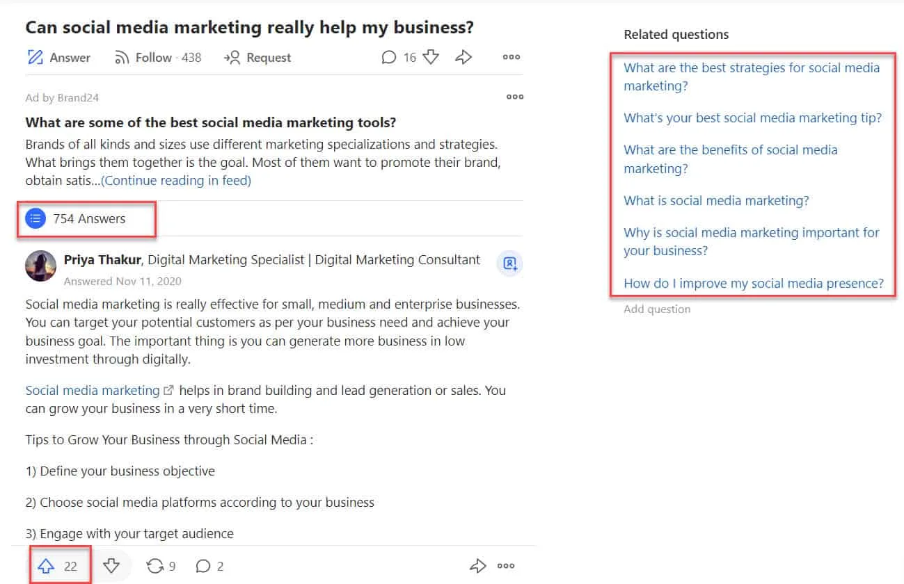 The best thing about Quora is that each question has answers provided by different site users. Users can also vote for what they think is the best answer to the question. You can then see the solutions based on user-based voting.