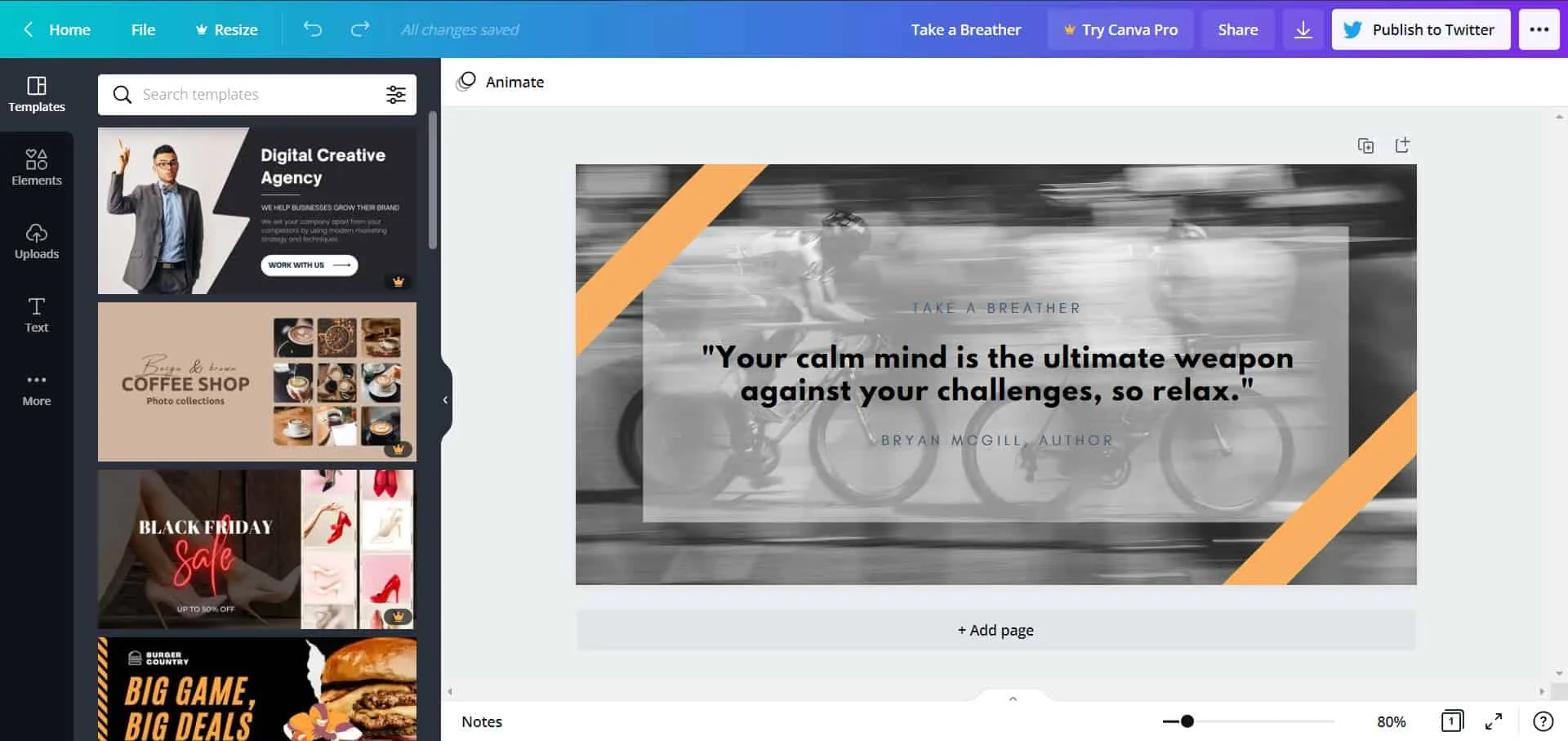 Aside from creating featured images using the tool, you can turn quotes from your blog post into images. Including these in your post should give readers room to breathe from the wall of text in your blog post.